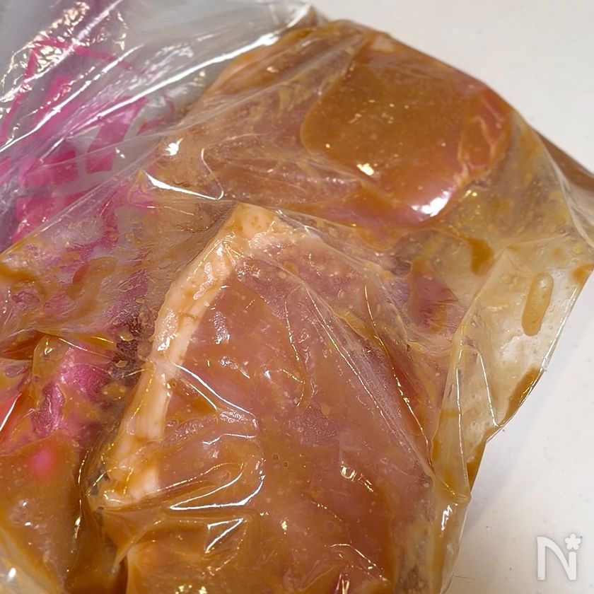 豚肉を入れて揉み込みなじませ、30分以上置く。