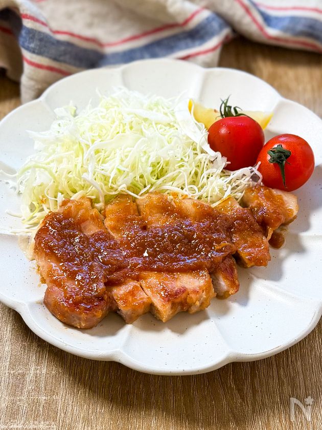 ・お好みで千切りキャベツ・ミニトマトをそえてください。