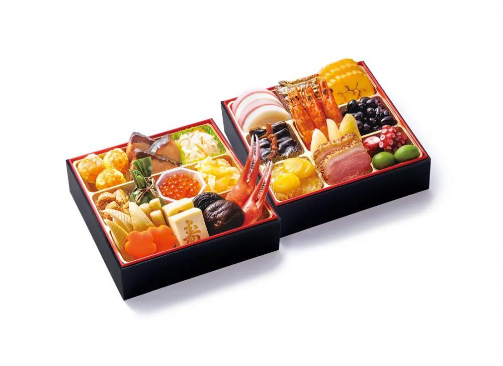 一の重には、あい鴨パストラミや有頭海老、栗きんとんなどが入っていて、和洋折衷の味わいが楽しめます。二の重には紅ズワイ蟹爪幽庵やいか黄金、味付いくらなどお正月らしい海の幸がずらり。小ぶりながらバランスがよく、夫婦や少人数で過ごすお正月にぴったり。「おせちは食べたいけど余らせたくない」という人にもおすすめです。