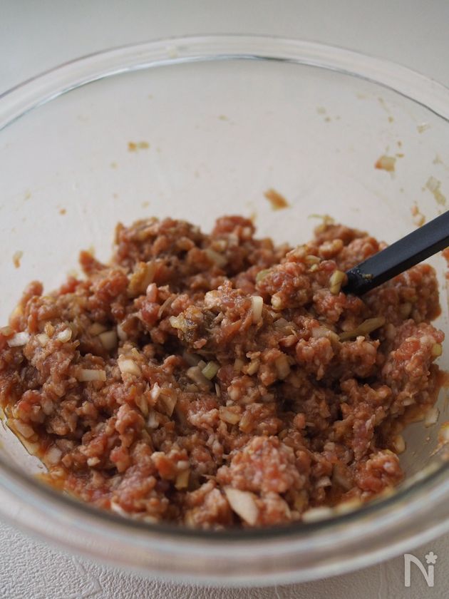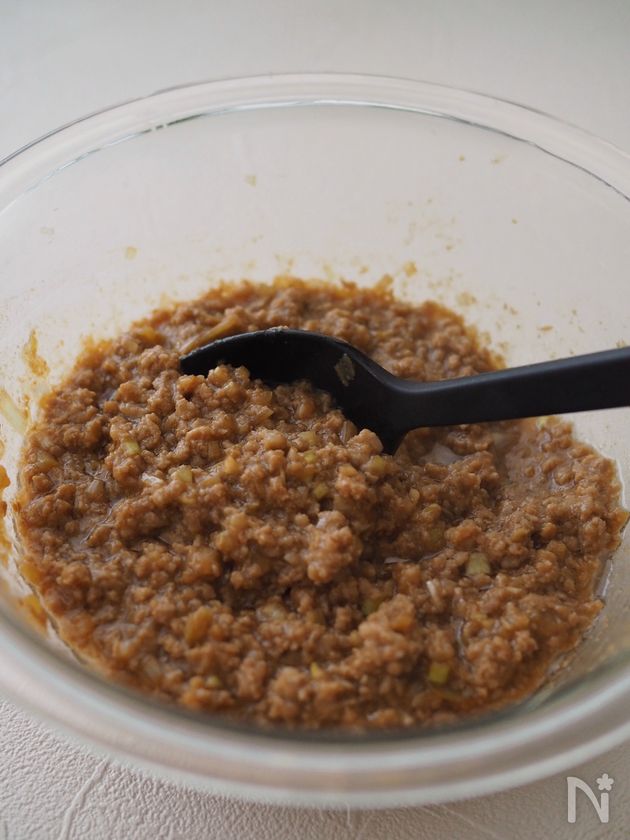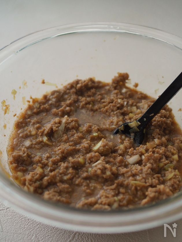 ボウルに豚ひき肉、長ねぎ、【A】を入れてよく混ぜる。