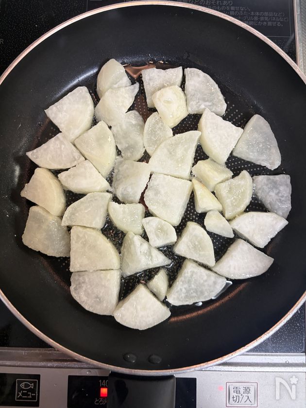 •揚げ焼きにするときは、大根同士がくっつかないように少し大きめのフライパンがおすすめ。表面がこんがり焼け、食感もよくなります。