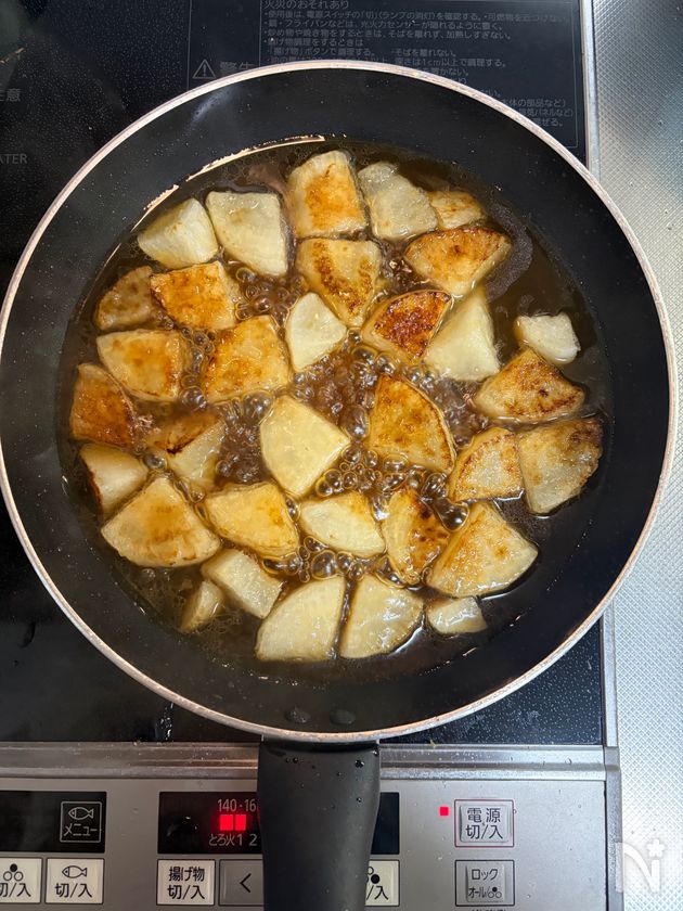 •レンジ加熱してから揚げ焼きにすることで、短時間でも中までやわらかく仕上がります。