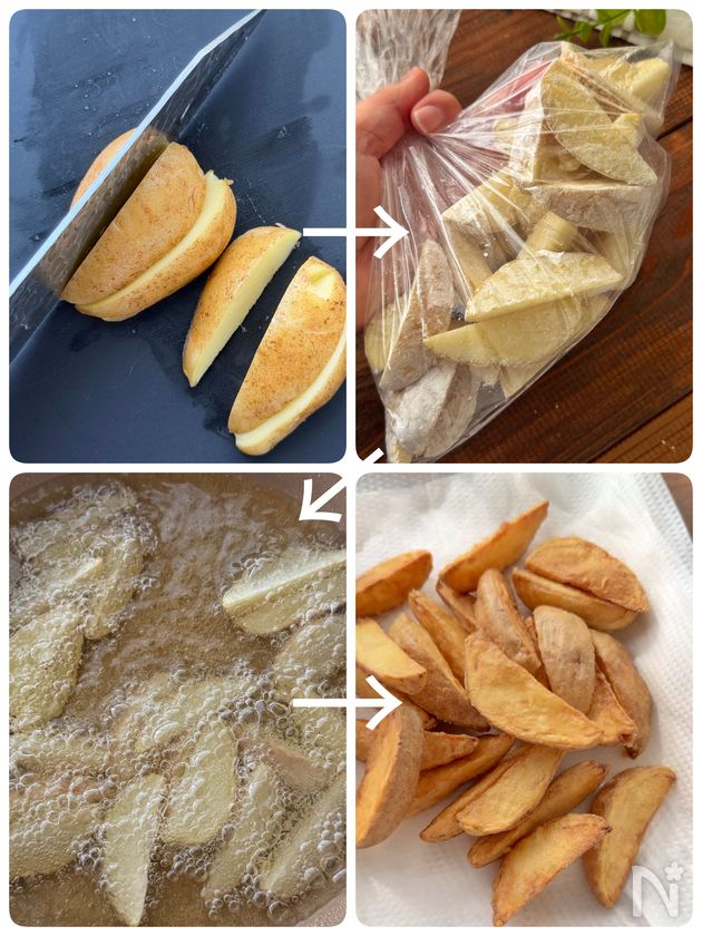 🔶じゃがいもは鶏肉を切る時に一緒に切って水にさらし、鶏肉を休ませている間に揚げると時間短縮出来ますよ