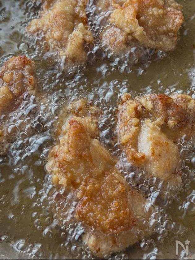 🔶鶏肉に片栗粉を二度付けしてから二度揚げする事で外はカリッと中はジューシーな唐揚げが楽しめます