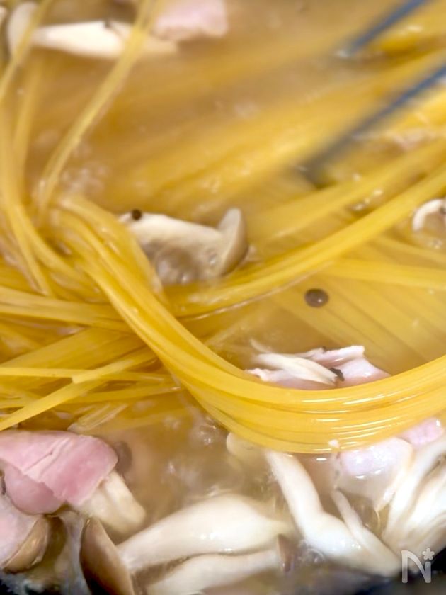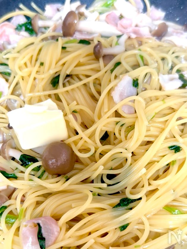 ワンパンで15分!【ベーコンとしめじの和風パスタ】