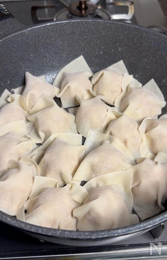 ・タネはぎゅうぎゅうに並べすぎると皮がくっつくので、なるべく隙間をあけて焼いてください。
