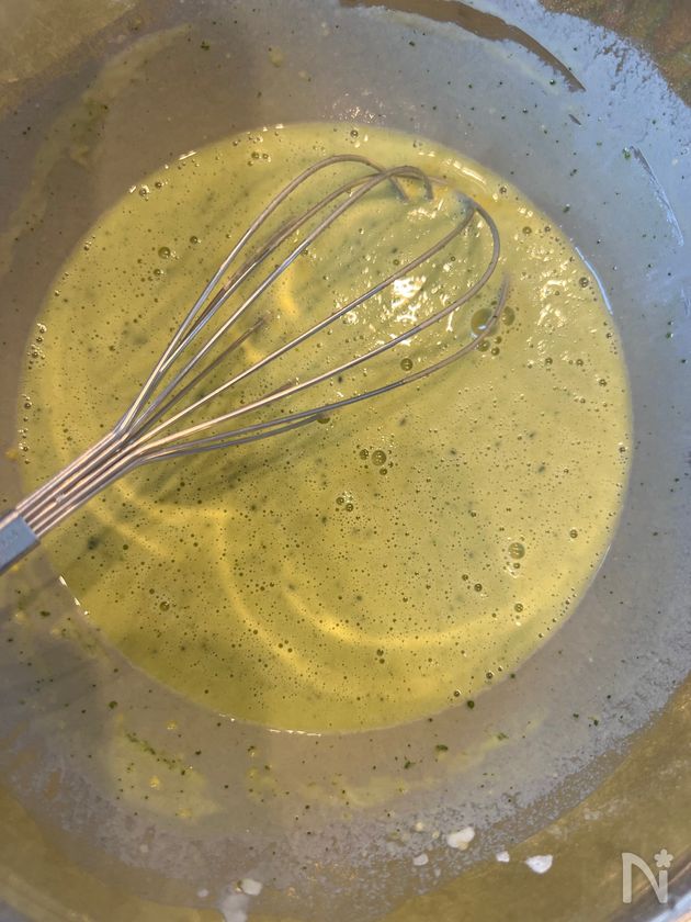 ・抹茶がだまになりやすいため、生地に加える際に抹茶を茶こしなどでふるいながら加えます。また生地を混ぜたら焼く前にザルなどで一度こしていただくときれいな生地になります。