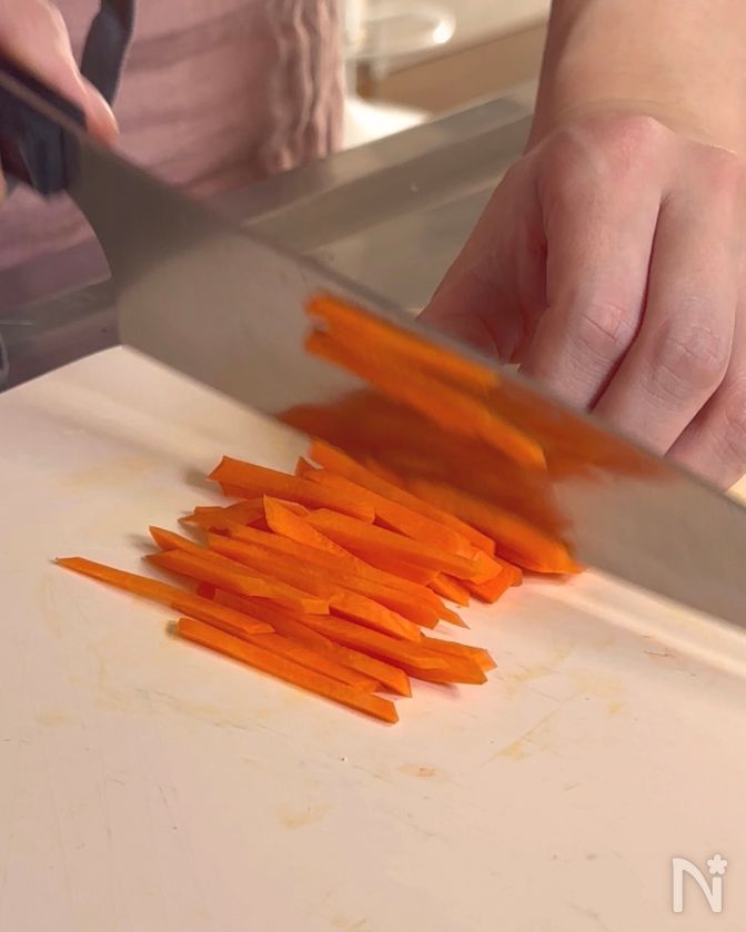 人参は細切り、ごぼうは斜め薄切り、椎茸は薄切り
