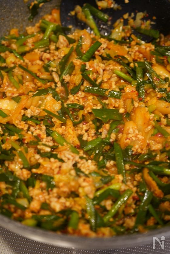 家族がおかわり‼︎ニラたっぷり豚ひき肉de豚キムチ丼♡