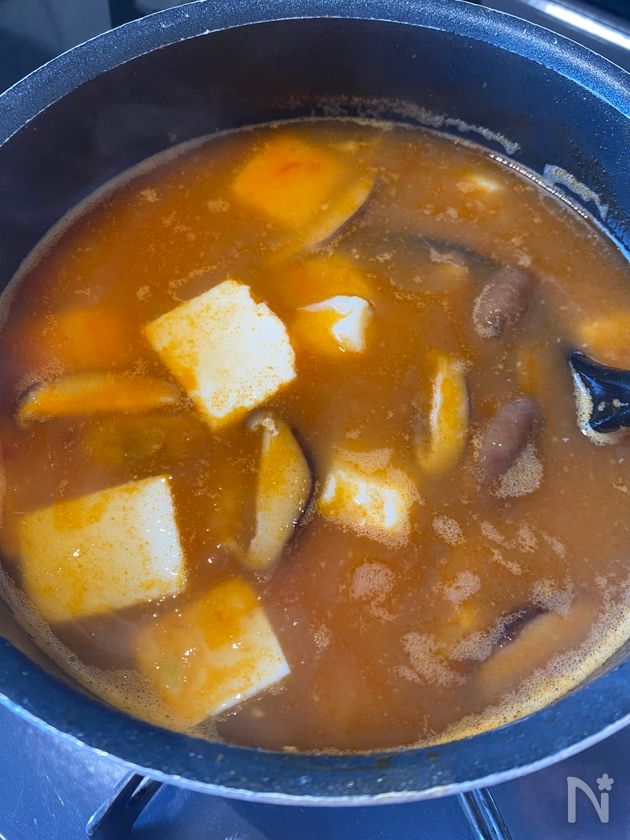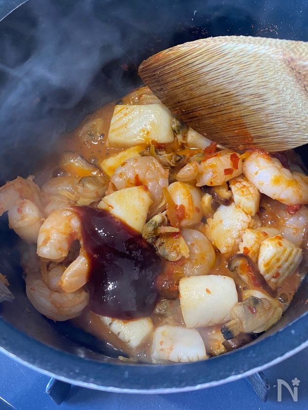【ご飯とバッチリ♡シーフードミックスで絶品スンドゥブ風♡】