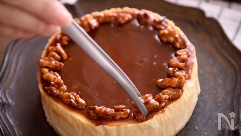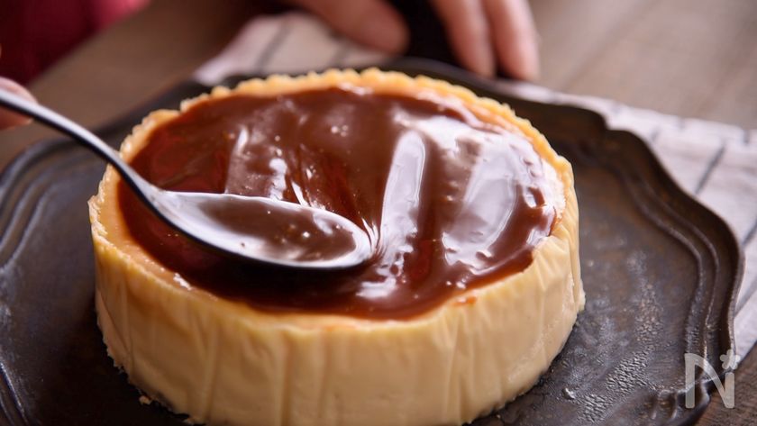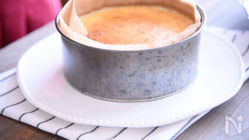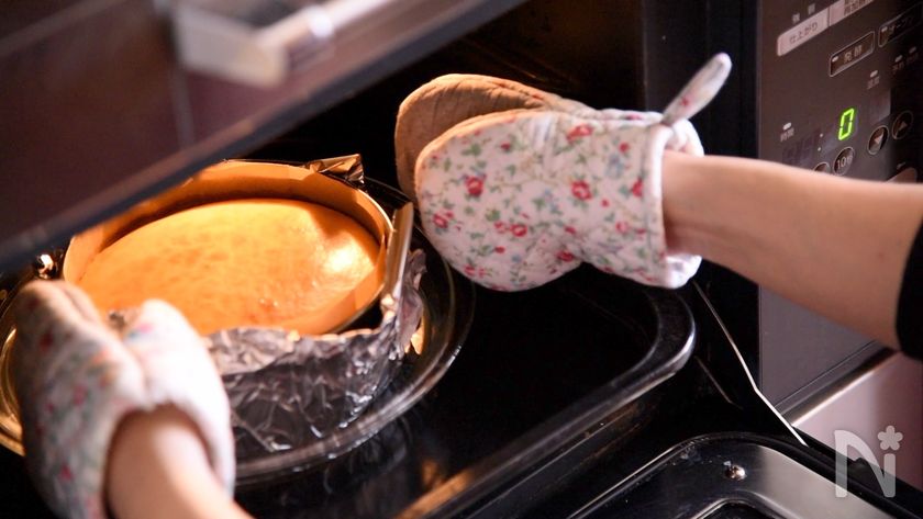 (8) 焼けたらオーブンの中に1時間そのまま置いておく。焼きたてはフルフルと表面が揺れる。