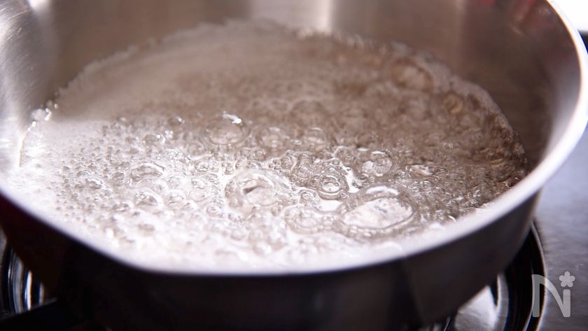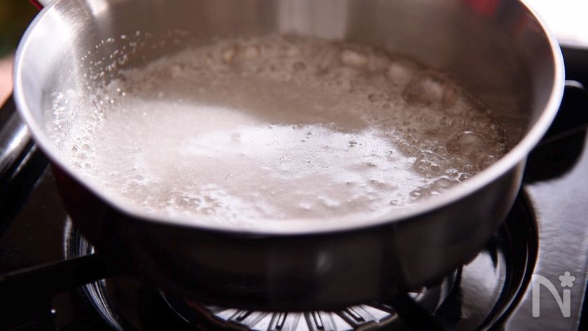 グラニュー糖に水を入れて熱して溶かす。絶対に混ぜない。
