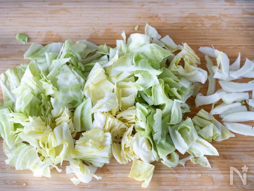 春キャベツは芯も柔らかいので、薄切りにしていただきましょう。
