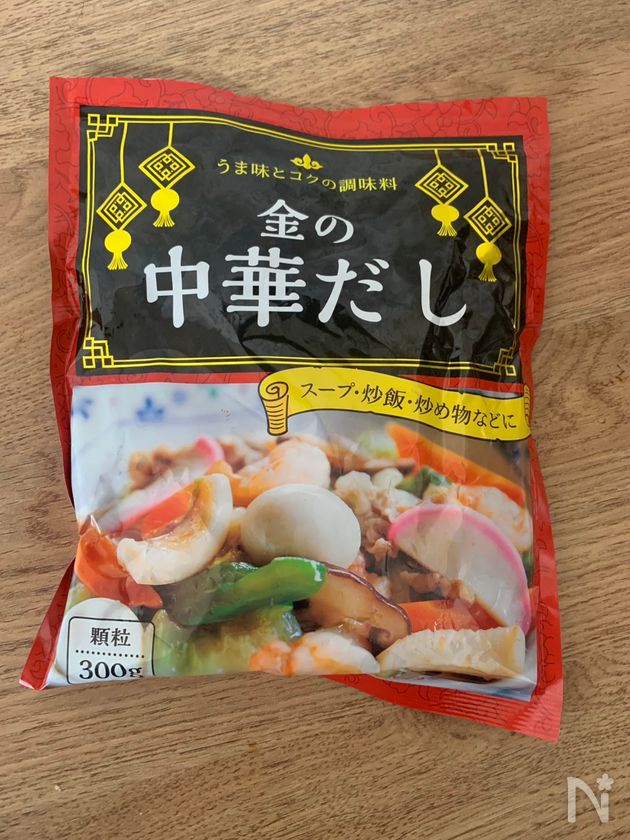 (3) 業務スーパーの金の中華だしを使用しました。顆粒タイプで溶けやすく、少量でも中華料理らしいコク深い味わいに仕上がるのが特徴。塩気が強すぎず、家庭料理に取り入れやすい点も魅力です。炒めものやスープ、煮込み料理などさまざまな場面で大活躍してくれます。