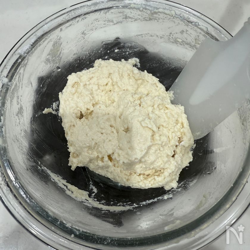 (下準備) 絹豆腐をペースト状になるまでよく混ぜ、
