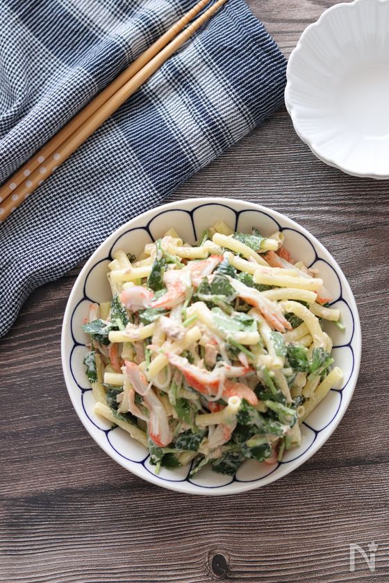 【三つ葉入りツナマカロニサラダ】ハマるわさびマヨ♪レンチン!