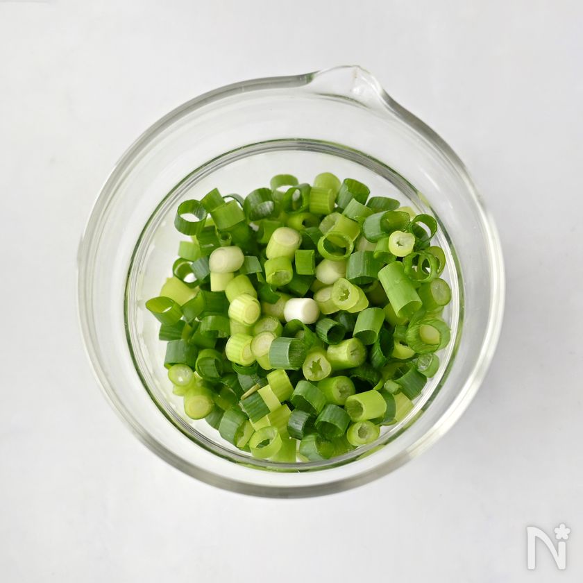 (1) 小ねぎを小口切りにする。