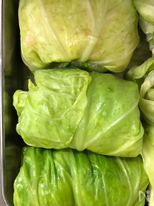 ・キャベツの大きめの葉が用意できない場合は、小さめの葉を2枚繋げて一枚の大きな葉のようにして巻いてください♪