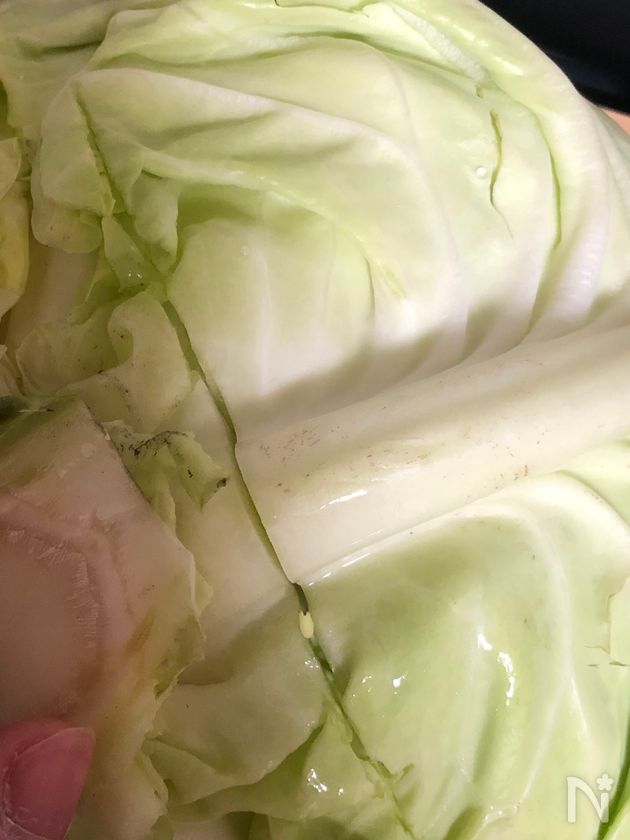 (1) キャベツの葉を6~8枚剥ぐ。(大きめの葉)