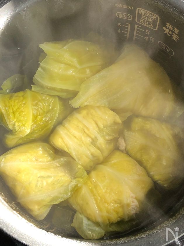 ・炊飯ジャーにロールキャベツをぎゅうぎゅうに詰めてください。