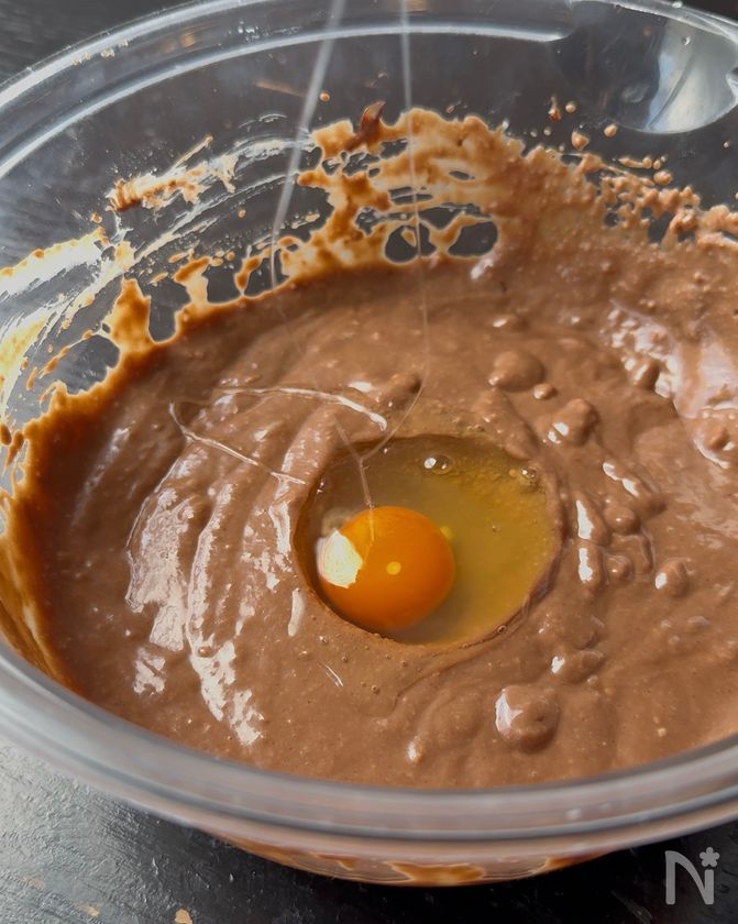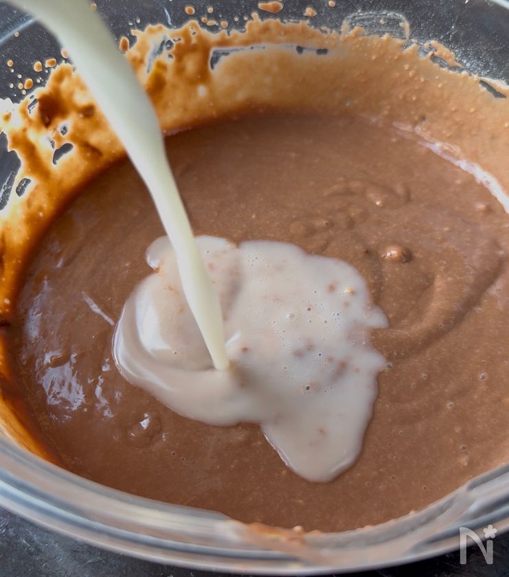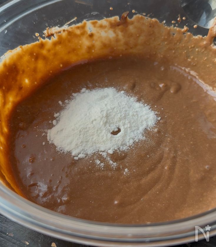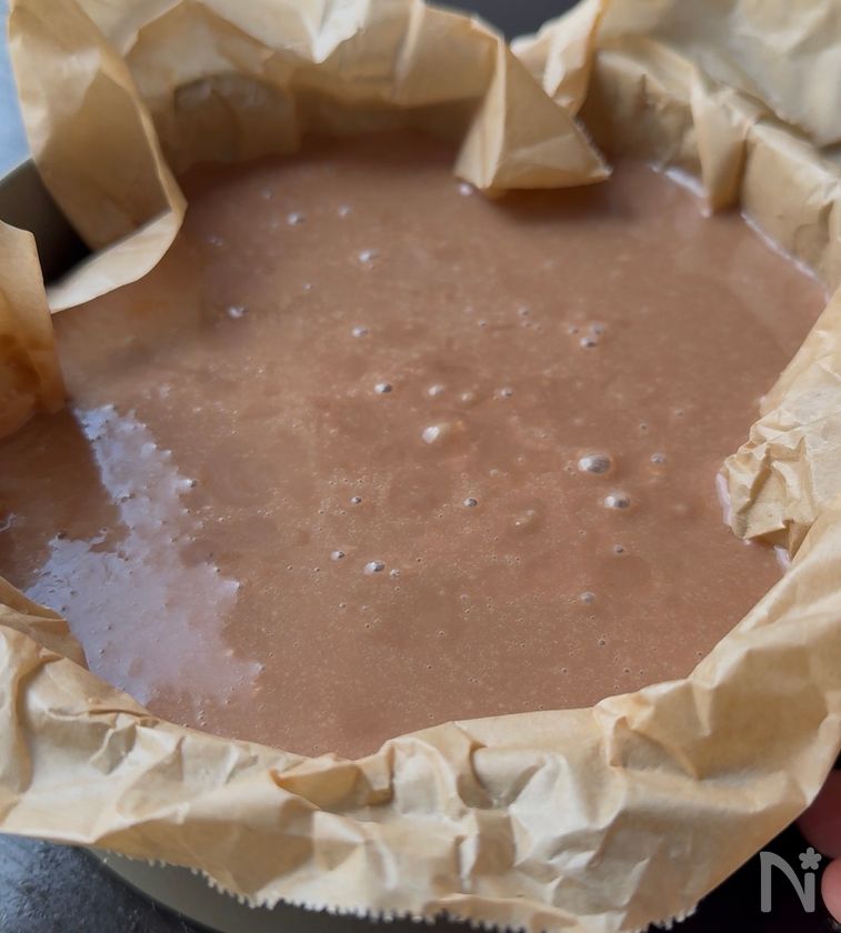 (11) 型にクッキングシートを敷き、10を流し入れる。