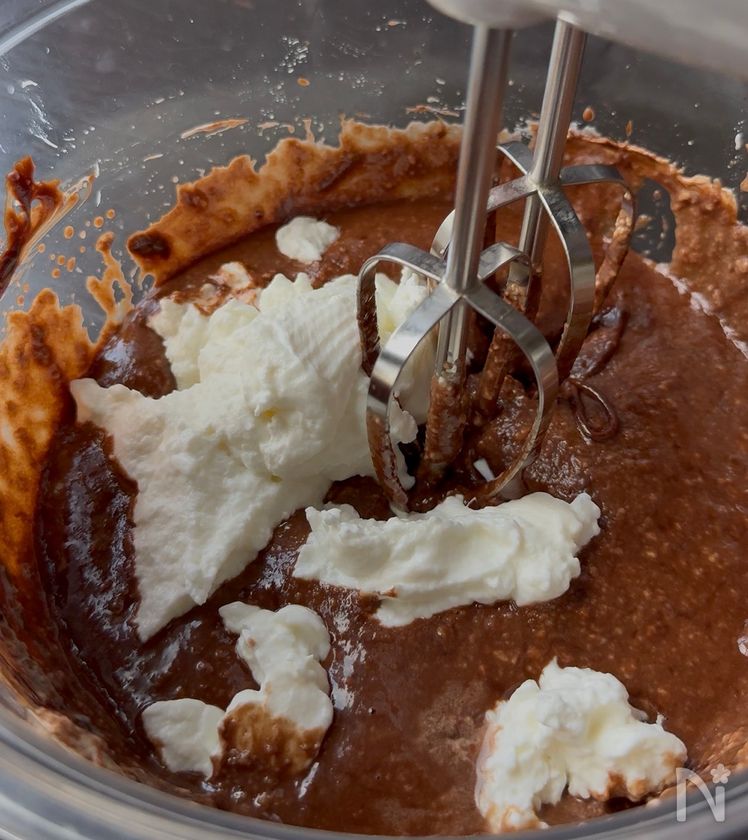 (6) 5に水切り済みの無糖ヨーグルトを加え混ぜる。
