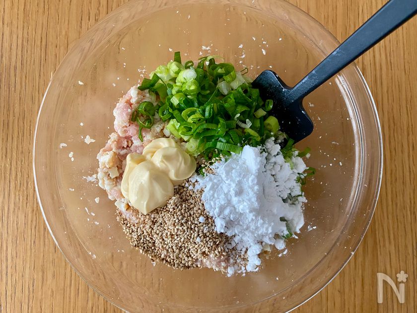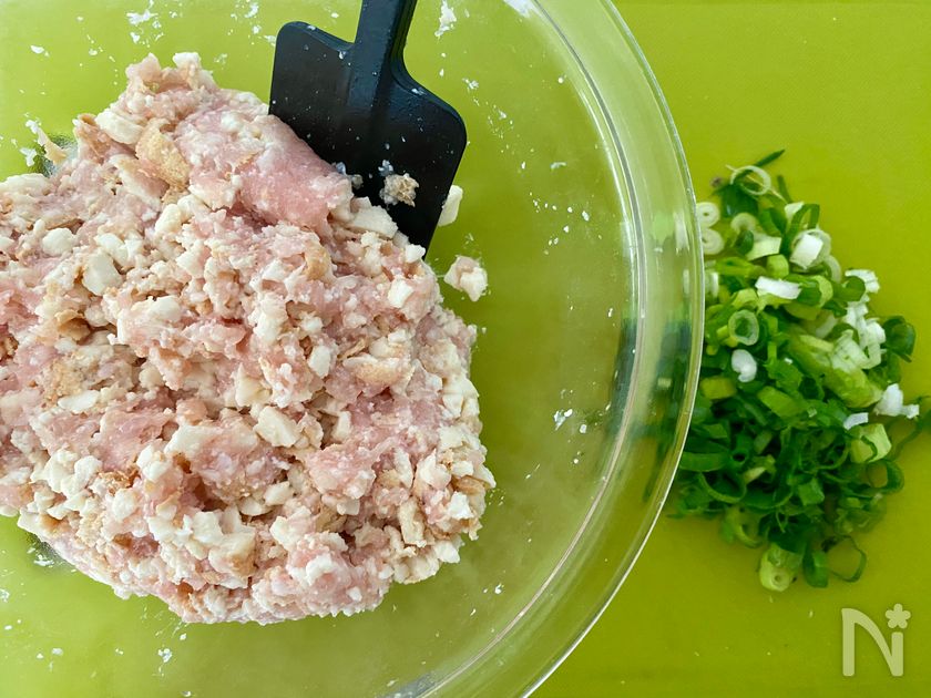 (1) ボウルに青ねぎ・【A】・分量外の塩こしょう少々も加えて更によく混ぜる。