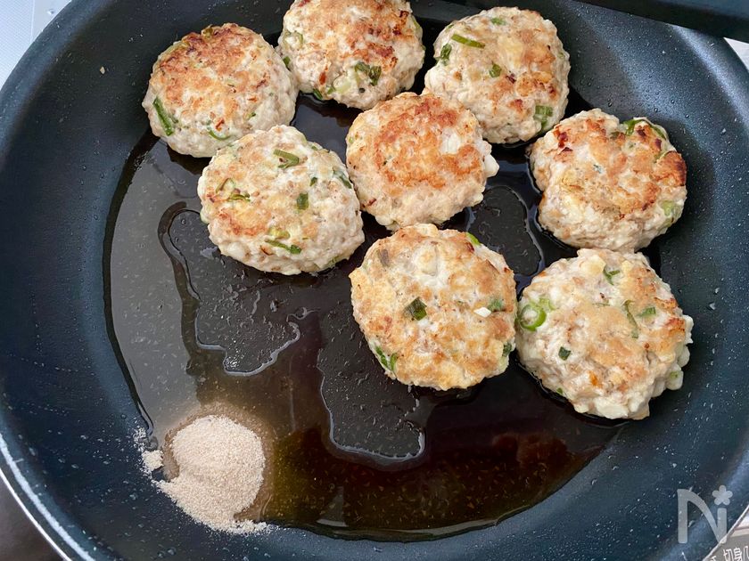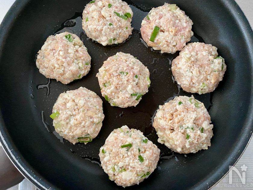 絹揚げがオススメですが、厚揚げでも代用できます!混ぜて丸めるだけなので、超簡単です♪
