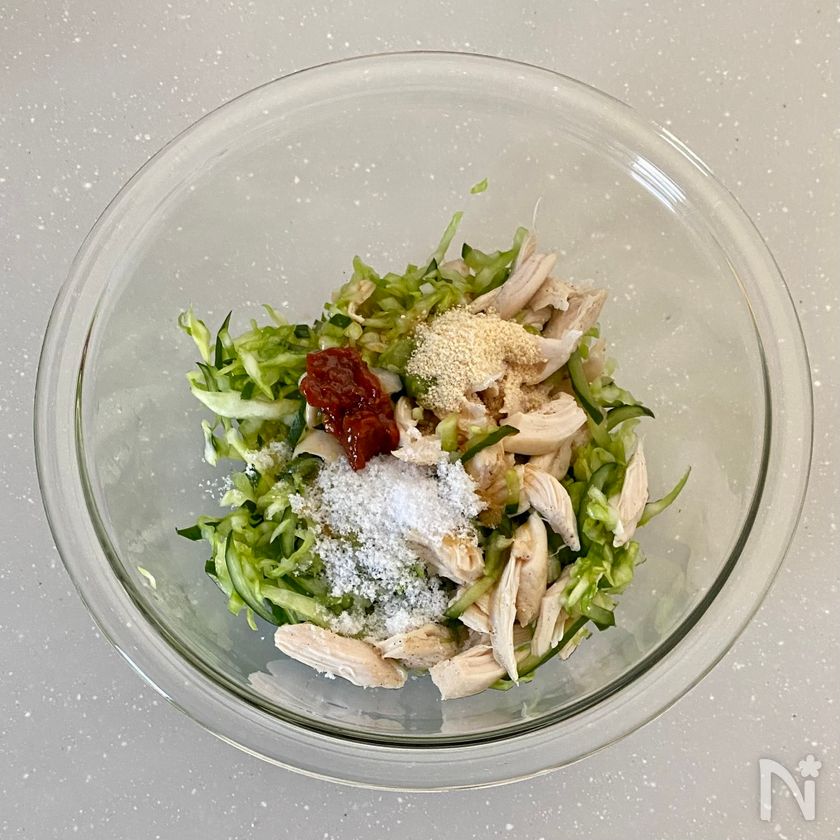 やみつき!細切りキャベツとささみの旨辛サラダ