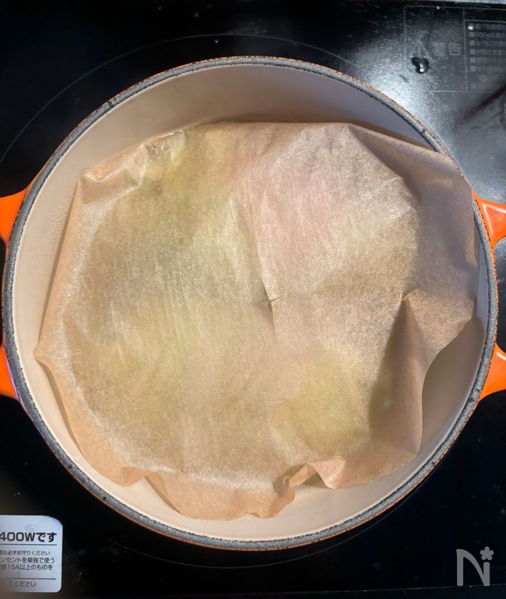 (5) 沸騰したら落し蓋をして、弱火で15分ほど煮る。