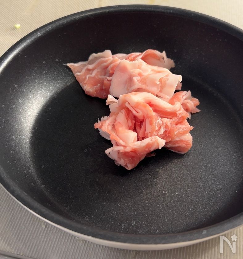・豚バラ薄切り肉は食べやすい大きさに切る。