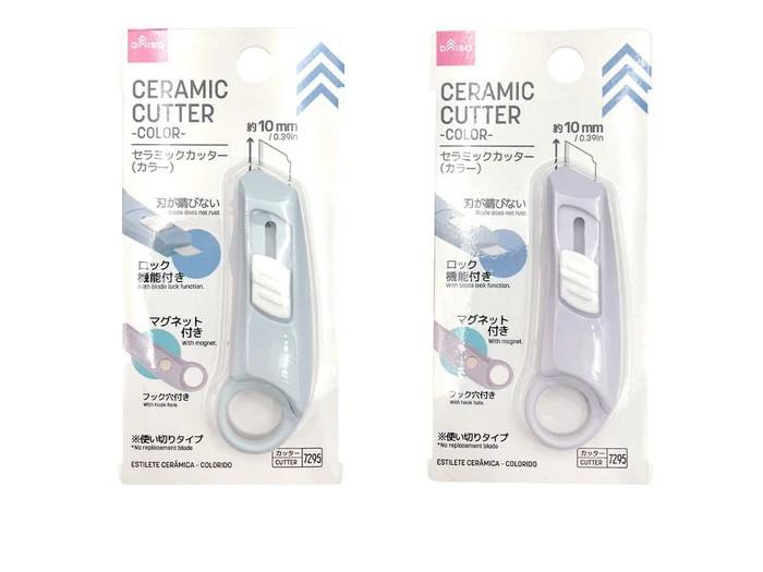 荷物の段ボールを開けたり、封筒の開封に便利なセラミック刃のカッター。ミニサイズでマグネット付きなので、玄関ドアや冷蔵庫などに付けておけるので便利です。セラミックなので刃が錆びないのもポイント。淡いカラーもかわいいですよ。