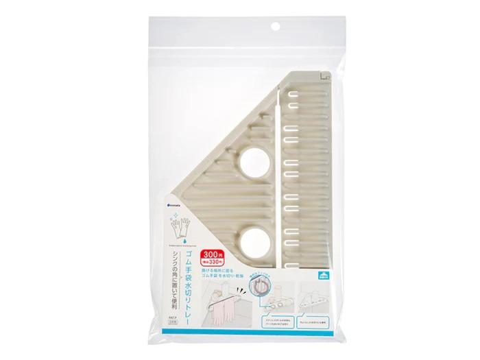 シンクの角に置くだけで、置き場所に悩みがちなものを乾かしやすくする水切りトレーです。本体の手前を折って立てると、ゴム手袋や、タンブラーのパッキンなどを掛けることができます。ペットボトルやマグなどの乾燥にも便利。吸盤が付いているので、しっかりとシンクに固定できますよ。
