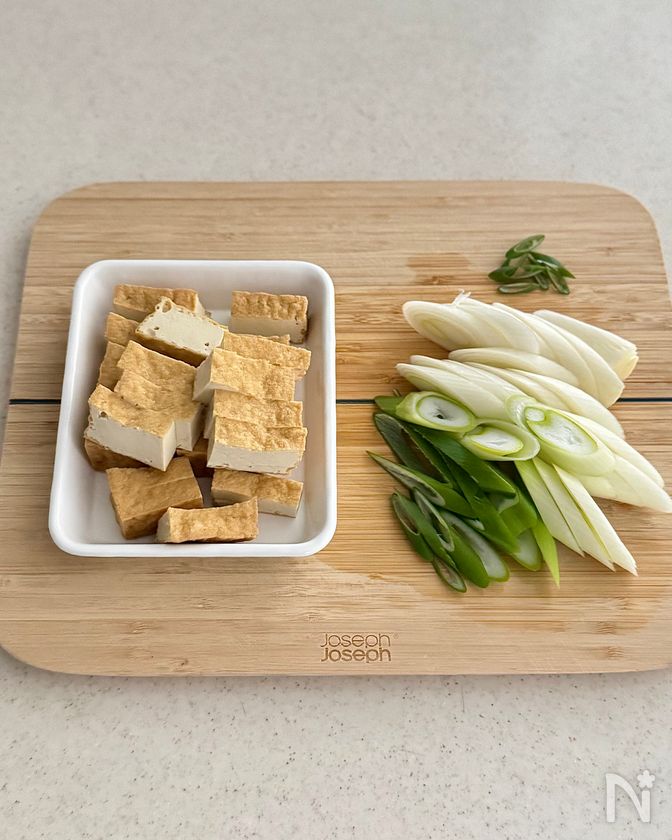 厚揚げは油を軽く拭き取り、ひと口大に切る。