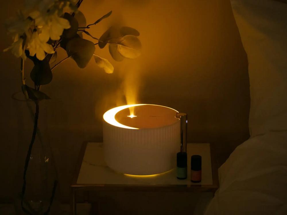 最大約9時間の連続使用が可能で、寒暖差の気になる朝晩や就寝中もしっかり加湿。別売りのアロマウォーターやオイルにも対応しているので、潤いと光・香りに包まれながら心も体もリラックできます。