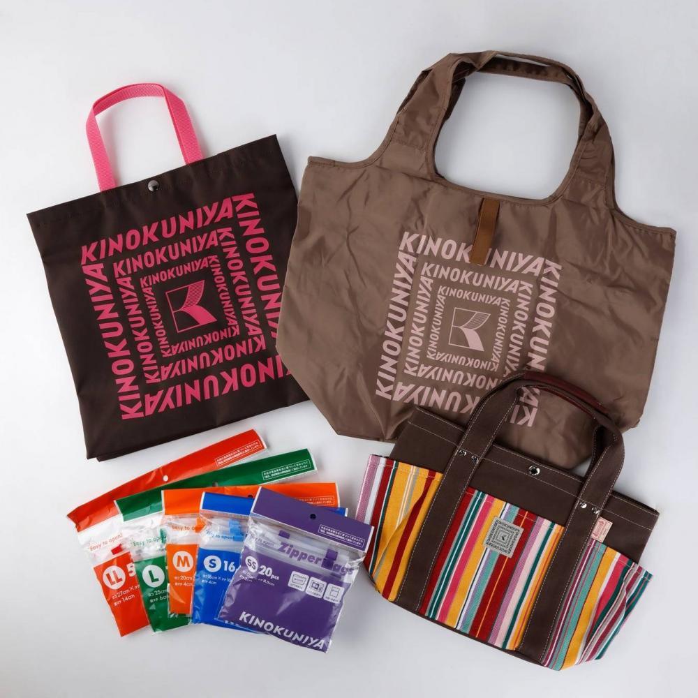 ブラウンを基調としたカラーエコバッグや、レ・トワール・デュ・ソレイユとのコラボトート、保冷バッグなど、実用性とデザイン性を兼ね備えたアイテムを詰め合わせたセットです。