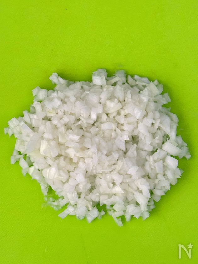 (1) 新玉ねぎは、皮をむき、みじん切りにする。