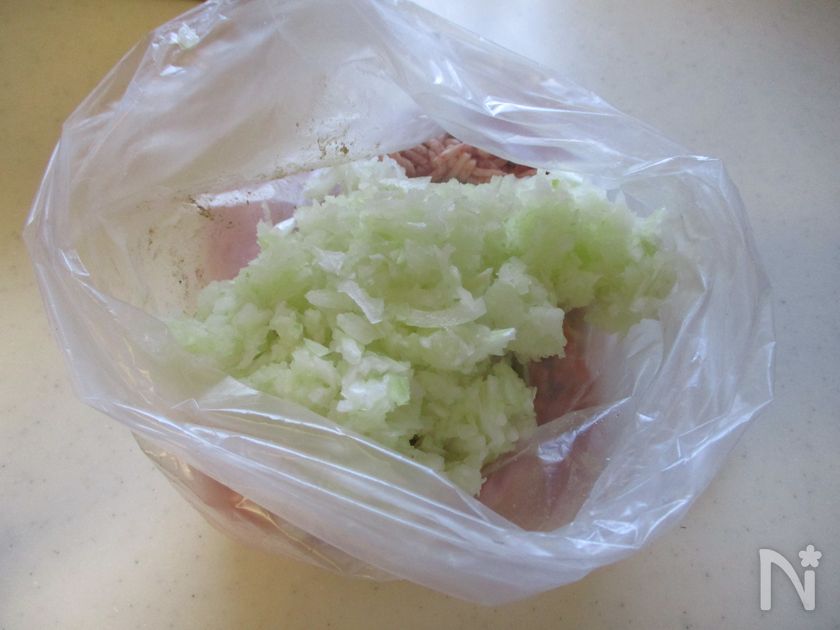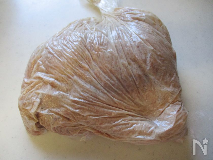 (1) ポリ袋に【B】を入れ調味料を全体になじませたら、