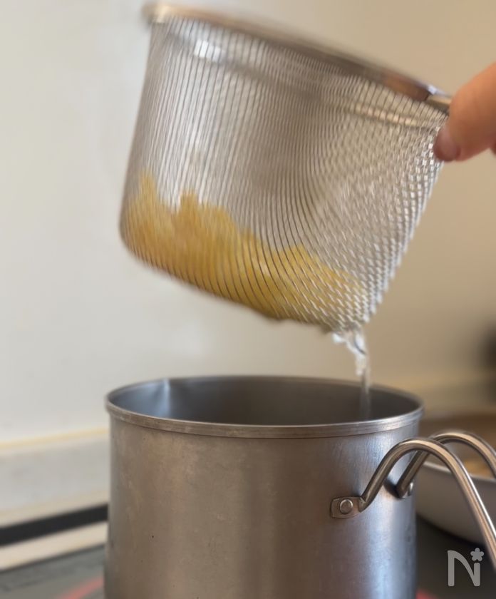 (2) マカロニは袋の表記通りに茹で、水気を切る。