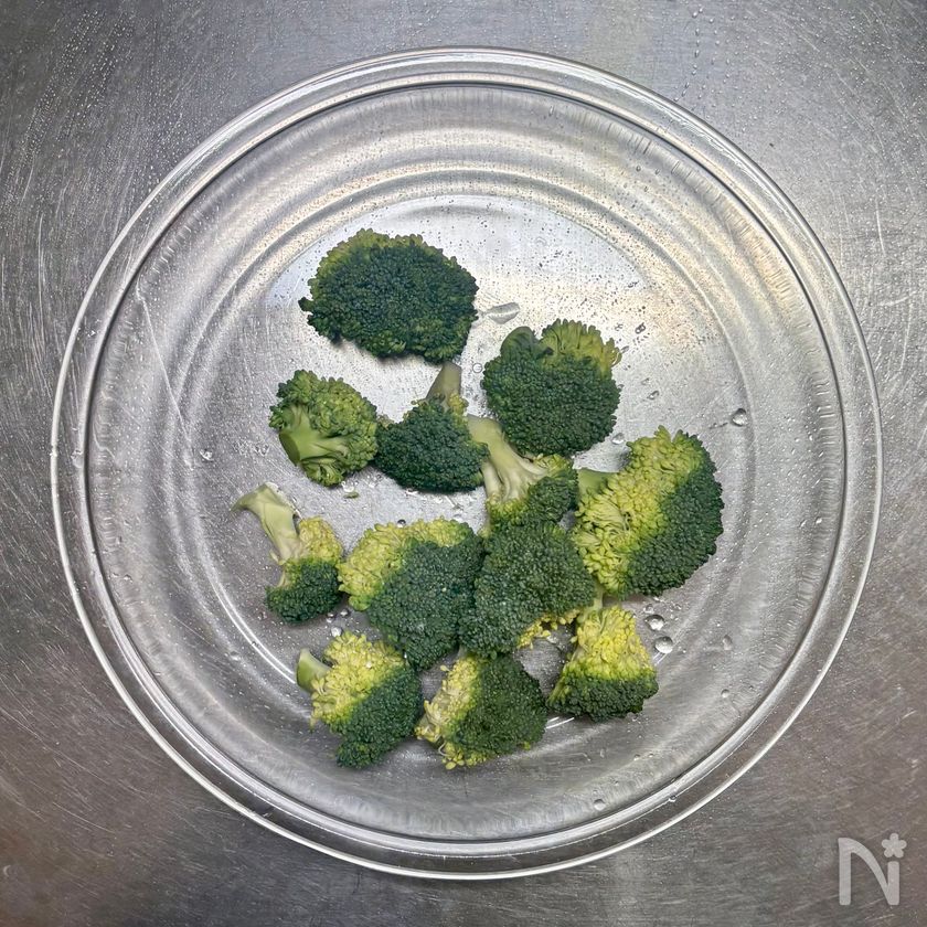 水にサッとくぐらせて耐熱皿に並べて塩をふり、ふんわりとラップをして電子レンジ(600W)に2分〜2分30秒かける。