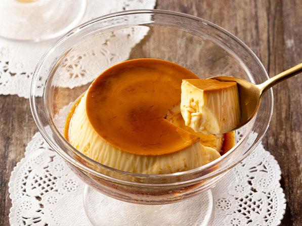 適切な湿度と温度を保ち、舌触りなめらかな食感に仕上がるようスチームオーブンで丁寧に焼き上げたプリンです。ほろ苦いカラメルソースとの相性を堪能できます。