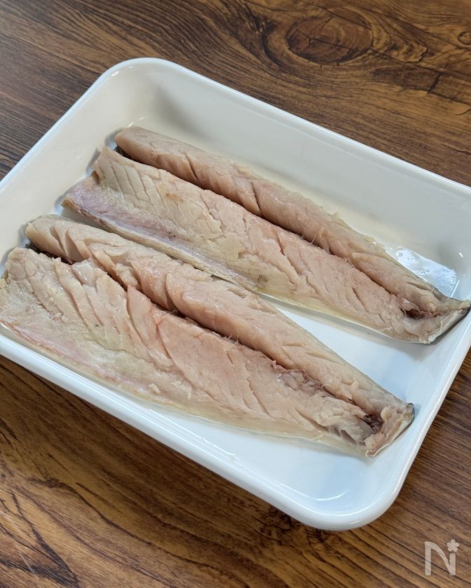 (下準備) ・無塩さば(半身)はあらかじめ解凍しておく。下処理用の酒をふって5分ほどおき、臭みを抜いてから、ペーパータオルで水けをしっかり拭き取る。