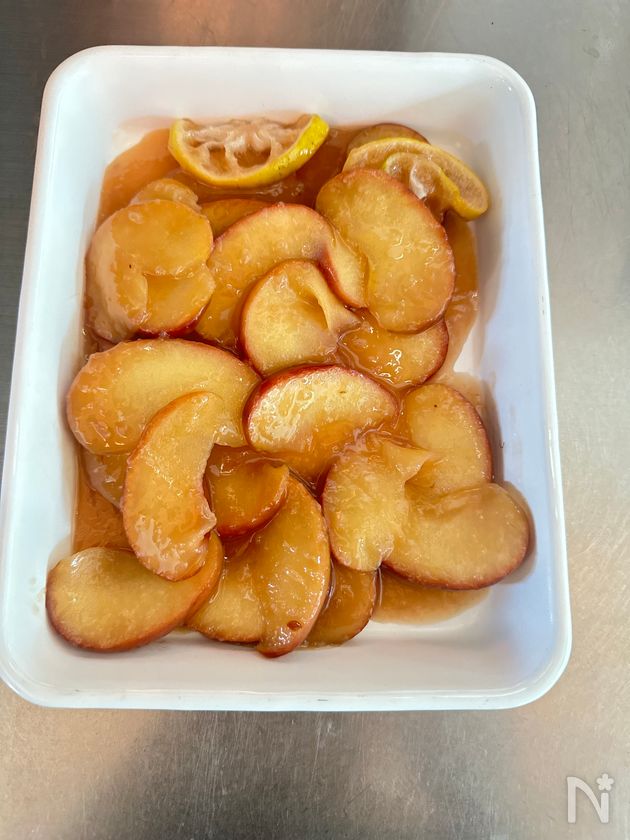 ○りんごの種類によっては、酸味があるので、味見をして酸味が強い場合はレモンも省いてくださいね。
