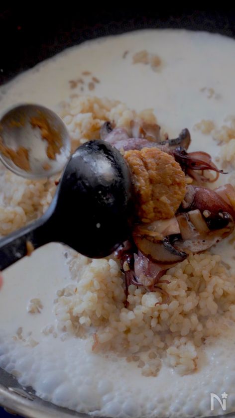 10分で完成【ホタルイカの味噌クリーム玄米リゾット】