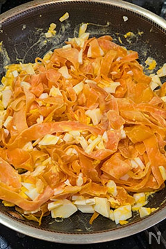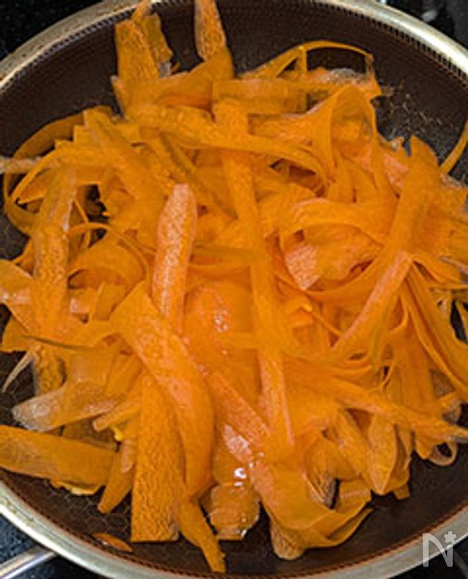 人参を薄く切る(ピーラーやスライサーを使うと便利)。