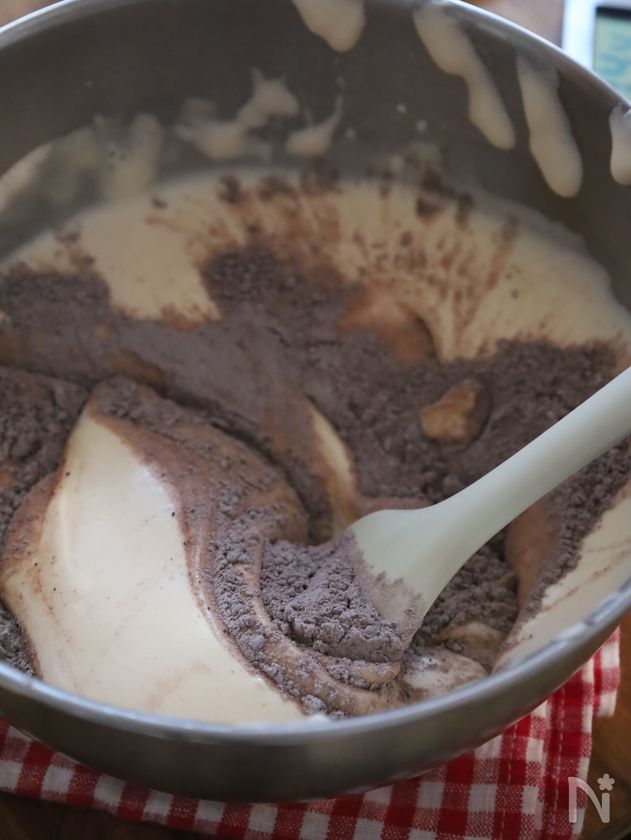 【A】の粉類を薄力粉50g・ココアパウダー10gに変更します。後は手順は一緒です。