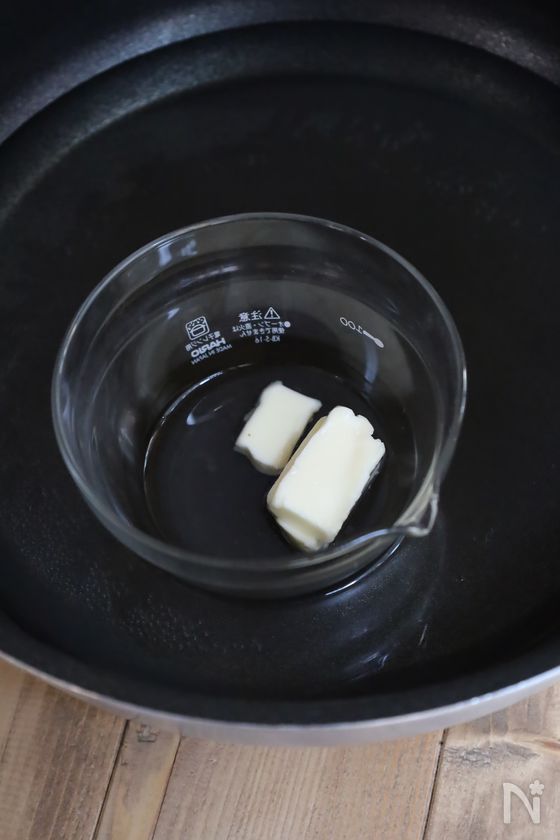 (3) 湯煎から外したら【B】を湯煎にかけ、溶かしておく。