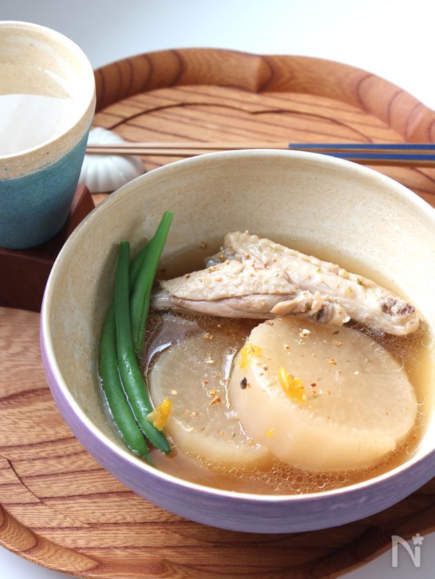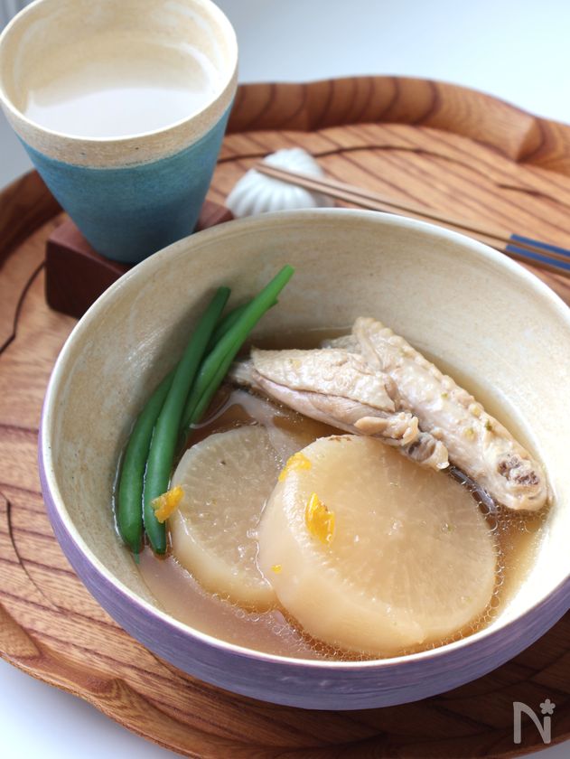 (下準備) ・大根は皮をむいて3~4㎝幅の輪切りに切る。