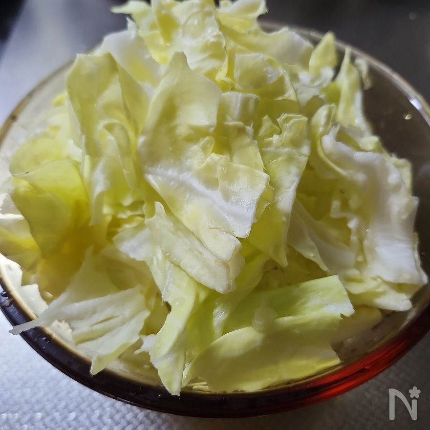 ◎春キャベツはキッチンペーパーで挟むようにし、両手で水気をしっかり絞るのがポイント!水気をしっかり切ることで、味がぼやけず美味しく仕上がります。