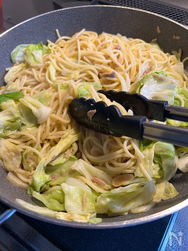 茹で上がったパスタの上にツナ缶をオイルごとかけてから和えることで、麺がオイルでコーティングされ、くっつきにくくなります。